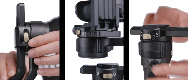 無需額外配件即可完成橫拍和豎拍切換,“小金帽”集成安全鎖和鎖緊螺絲,雙維度保障相機安全。需要注意的是豎拍時必須安裝鏡頭支撐架,防止鏡頭向下偏移,如需使用增高墊,必須使用兩枚螺釘連接鎖緊。