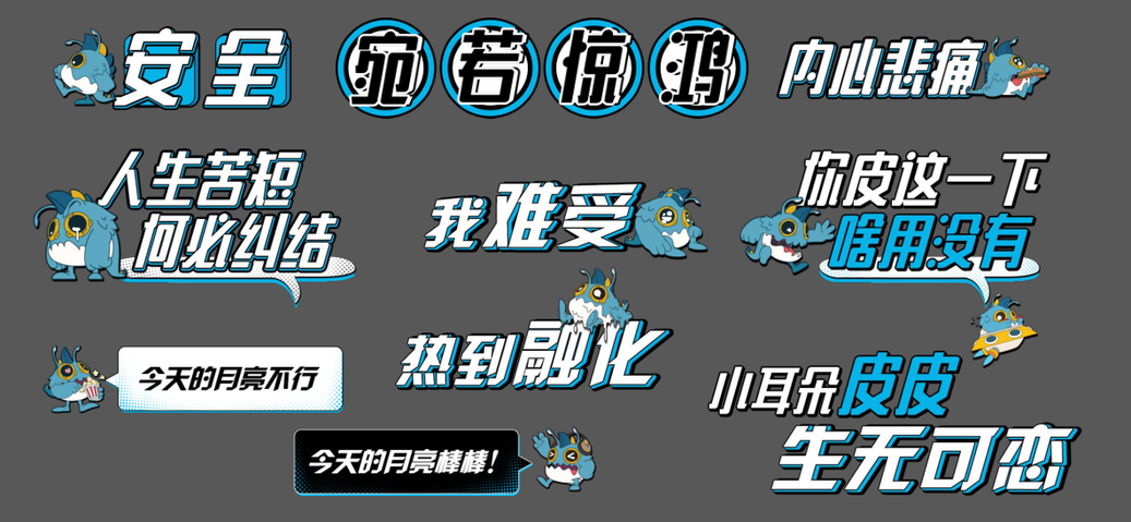 花字類型總體分為敘事性文字設計、抒情文字設計、標題設計、調侃型文字設計和情緒性元素設計。像感嘆號、問號、省略號、滴汗,都是花字元素中的一種,屬于情緒類元素。