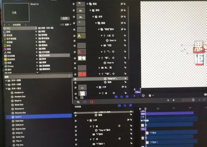 然后選擇你想要的效果,可以嘗試一下它這里面的所有效果,把想要的預設效果直接拖到字幕上,再打開它的關鍵幀,想要調節速度就直接移動關鍵幀即可,做好之后輸出做好的字幕動態。在此強調輸出來的時候要設置好,模版的名稱就是改成板子的名稱,類別改成自己建好的文件名字,然后把包括未使用的媒體和存儲預覽影片打上勾就可以輸出啦。