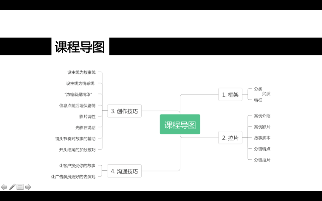 由上邊舉例我們可以理解到,同樣的一句話“一名女老師正在講導(dǎo)演課”能有完全不同的8種創(chuàng)作,如果問(wèn)我怎么能在短時(shí)間內(nèi)(10分鐘)寫(xiě)出這8種創(chuàng)作的分鏡,那唯一的答案是擁有導(dǎo)演的創(chuàng)作技巧。導(dǎo)演的創(chuàng)作技巧都有些什么呢?在做這門(mén)課之前,我是很難清晰、精準(zhǔn)的說(shuō)出幾個(gè),都在腦子里,但整理成可分享的內(nèi)容卻很不容易。經(jīng)歷這一年全心全意的課程創(chuàng)作期后,導(dǎo)演的實(shí)戰(zhàn)創(chuàng)作技巧可以分析出很多。在《職業(yè)導(dǎo)演核心課》中,結(jié)合行業(yè)生態(tài)的影片分類,按照短視頻、宣傳片、MV、產(chǎn)品類廣告、故事類廣告、創(chuàng)意類廣告、大預(yù)算影片、電影,按照類型難度遞進(jìn)式教創(chuàng)作技巧。給大家列舉一下課程內(nèi)的50個(gè)分類創(chuàng)作技巧(至于延伸出的更多技巧,就留到課程里去學(xué)習(xí)吧!)短視頻創(chuàng)作技巧: