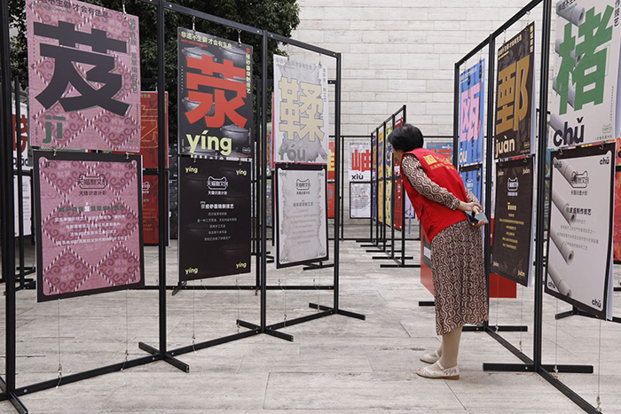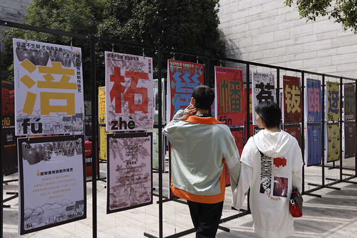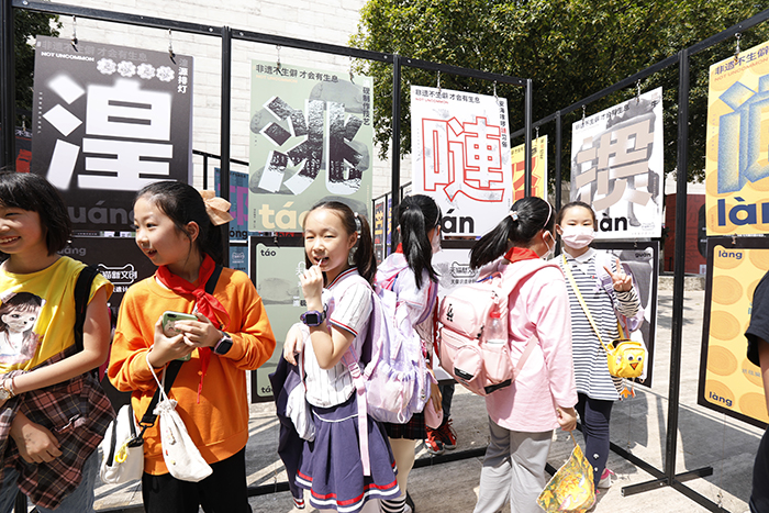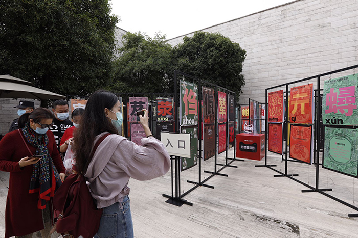 天貓新文創攜手杭州良渚博物院舉辦100張生僻字非遺海報線下展,每一張海報都代表著一項非物質文化遺產。