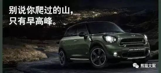 有一句流傳很廣的金句,“別說(shuō)你爬過(guò)的山,只有早高峰。”來(lái)自MINI COOPER。從表達(dá)和概念來(lái)看,這句的確很好。它將早高峰比擬成山,將上班族疲于奔命的窘境變得形象;它用每天擠早高峰的高頻場(chǎng)景,去和更多人產(chǎn)生關(guān)聯(lián),激發(fā)共鳴。
