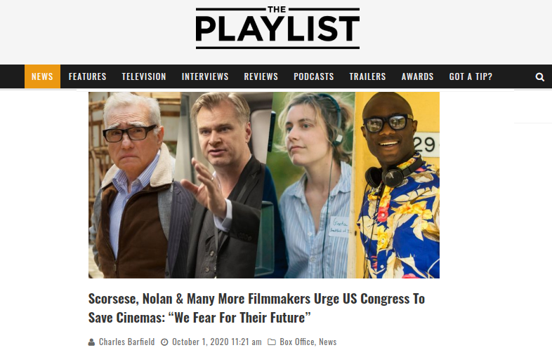 這封導演聯名信指出,93%的電影院企業在2020年第二季度有超過75%的虧損,倘若不予以援助,將會有69%的中小院線企業將被迫申請破產,進而導致全美超過15萬院線工作者面臨失業危機。電影人同時呼吁國會盡快采取解決方案幫助電影產業,比如將CARES Act的資金進行再分配,撥給電影院等受疫情影響較大的行業,以及通過RESTART Act等新提案幫助電影院等。