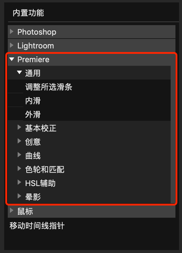 只需將軟件的快捷鍵設置在TourBox上,即可大幅降低原本鍵盤操作的復雜度。而在剪輯軟件上的應用,最基本最直觀的操作——就是將伸縮時間軸、移動時間軸等功能配置到TourBox的旋鈕、轉盤上。貼心的是,TourBox團隊開發了內置功能“移動時間線指針(變速)”,手轉得快,時間線就移動得快。(如果鍵盤操作,只能做到勻速)這個功能還可以用在看視頻上唷,看愛某藝、優某酷等等。小編的某男同事,還經常用它控制小電(mao)影(pian)。?再比如說,達芬奇中大量“Ctrl+Shift+某個遙遠按鍵”這類快捷鍵,真的一點都不快捷。但這些原本需要在鍵盤上四處尋找按鍵的操作,都可以通過TourBox簡化。無需抬頭低頭,無需頻繁移動手腕,直接實現單手盲操。另外,還有全選、吸附、撤銷、剪切、刪除等各種散落在鍵盤各地的快捷鍵,都可以根據自己的操作習慣,設到TourBox上。還以達芬奇為例,可以把“正放(快捷鍵L),倒放(J),暫停(K)”,分別設在TourBox的“滾輪上滾,滾輪下滾,按下滾輪”的3個操作上,非常省事。而在 Premiere 的應用上,TourBox 最新V2.2軟件中,內置了兩套官方預設:Premiere Color Grading(調色)