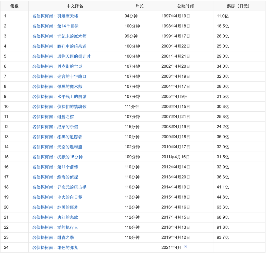 以幾乎每年一部的《名偵探柯南》劇場版為例,2011年后,影片的票房不斷走高,且上升勢頭明顯。