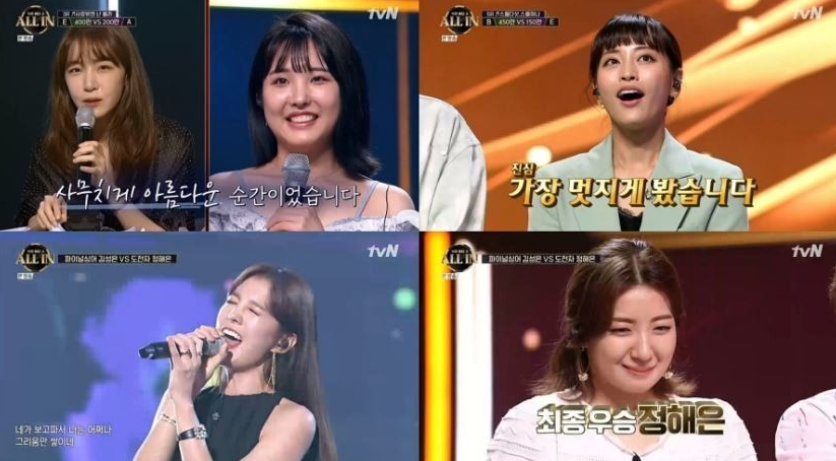 節目簡介:《全部下注》是一檔結合了獎金下注元素的游戲音樂類試播節目,共播出2期。節目賽制分為下注舞臺和最終舞臺兩個階段。下注舞臺分為六輪競演,五位素人選手帶著節目組給的500萬韓元的原始下注資金,在每輪演唱之前為自己下注。同時,每輪還各有一位明星嘉賓作為下注輔助。每輪競演開始前,節目組公開該輪表演曲目,下注最高的素人選手可以挑選本輪競演的對手,兩人同唱一首歌,由現場評委與線上觀眾共同打分,獲勝者可以獲得對方的下注資金。此外,每位選手各有一次all in機會,不論手上保有多少金額,只要all in,即可挑選對手。五位素人彼此不知道對方的嗓音,且競演過程中,不下場競演的選手也聽不到比賽的選手表現。下注舞臺中積累了最高金額的素人選手可以進入終極舞臺,與明星歌手進行比拼。選手可以選擇all in或stop兩種下注方式,all in勝利時可以獲得雙倍獎金,失敗時一無所有;stop無論勝敗都只能獲得獎金的50%。