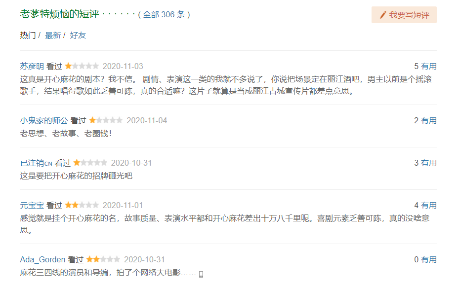 《老爹特煩惱》是一部主打父女情感的公路喜劇。一部學生作業級別的平庸之作,在網大市場上可能并不少見,但作為開心麻花的跨界首發未免草率。影片掛了開心麻花的招牌還套了“XX特煩惱”的句式,里面卻沒有相應的明星熟臉,許多人點進來深感上當,反彈格外猛烈。