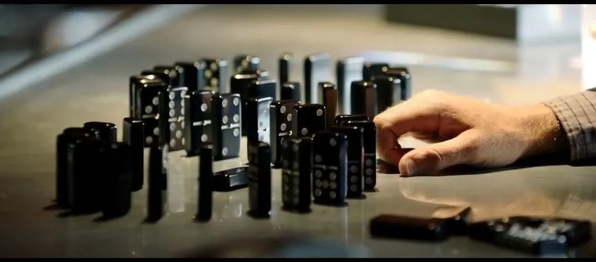 這段情節(jié)出現(xiàn)在FOX公司背后的大家族的兩個兒子,在商量此次危機的時候,可以看到一串多米諾骨牌倒了一個,這其實意味著他們家族對公司的控制出現(xiàn)了斷層,這個倒下的多米諾骨牌代表的就是陷入風波的羅杰。