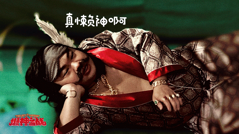 “大衛(wèi)就在石頭里,我只是鑿去了多余的石頭。”米開(kāi)朗基羅曾輕描淡寫(xiě)說(shuō)。Kevin的創(chuàng)作同樣,每記刀法精巧并準(zhǔn)確,直到懶神越來(lái)越面目清晰,歌詞演變?yōu)楦谡Z(yǔ)的版本,更多有趣的細(xì)節(jié)自然而然生長(zhǎng)出來(lái)了,一切水到渠成又無(wú)比確信,因?yàn)橛葾ustin power的美感與幽默感搭建出的宇宙中,只有分毫不差的如此才是對(duì)的。“那里還要再加一點(diǎn)”和導(dǎo)演共同創(chuàng)作的過(guò)程,太叫人興奮。總能發(fā)現(xiàn)可以繼續(xù)玩的地方。開(kāi)拍前,導(dǎo)演靈光一閃想加個(gè)游戲人物也被懶神制服的鏡頭。制作早沒(méi)預(yù)算了,沒(méi)事,KARMA拍胸脯包了。就算只出現(xiàn)一秒,照樣弄點(diǎn)花樣經(jīng)。