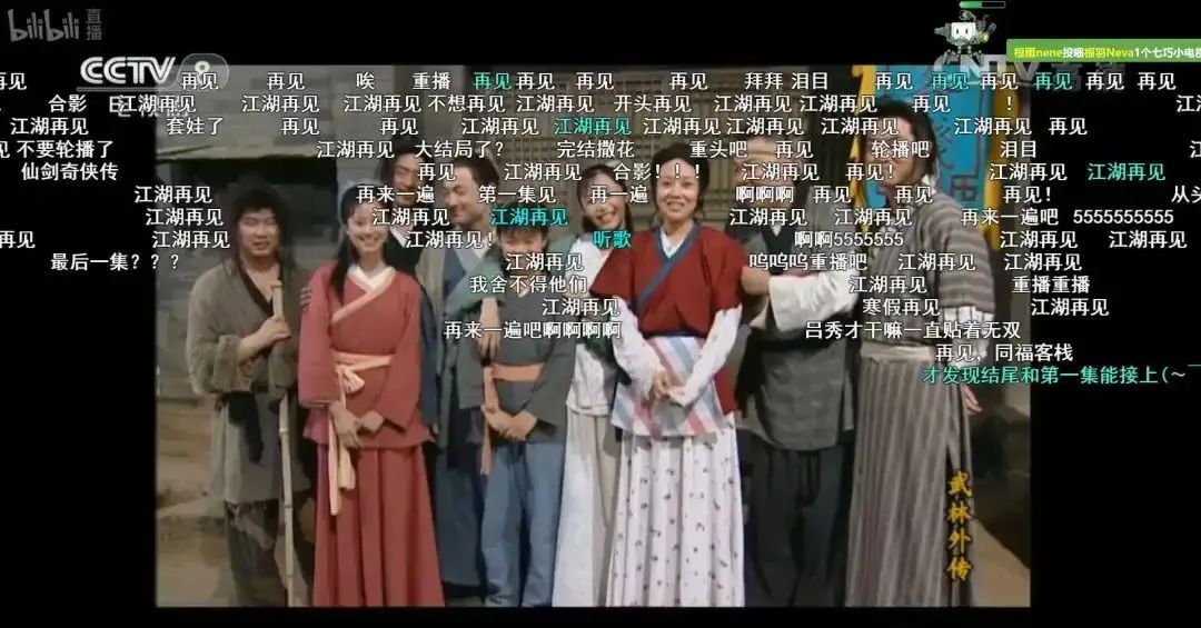 在直播最后一集,網友用彈幕中告別《武林外傳》早已不是一部虛構的電視劇,它已經融入人們的生活之中,產生潛移默化的影響。對許多觀眾而言,同福客棧仿佛就是一個平行世界,每一個角色都像老朋友。
