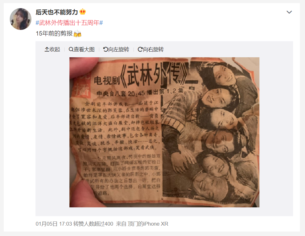網友收集的15年前《武林外傳》首播的剪報