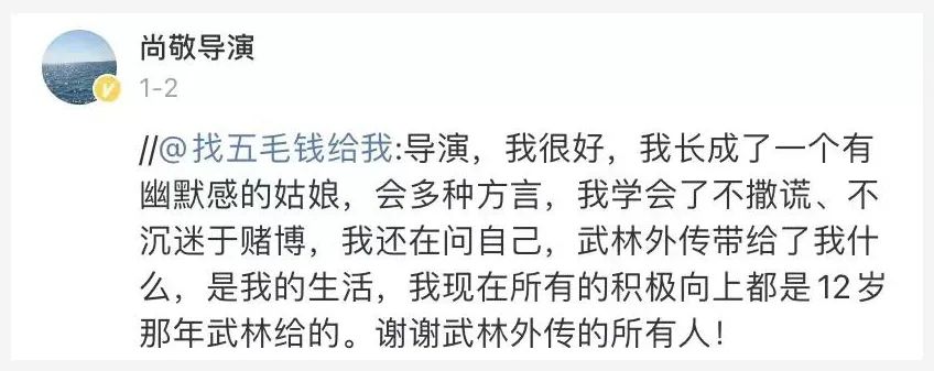 和@檸檬一樣受到《武林外傳》影響的觀眾有很多,在尚敬導演的微博評論區,還有很多感人的留言,“我們都好好活著呢,有時會想想同福客棧的那群人在干嘛”。