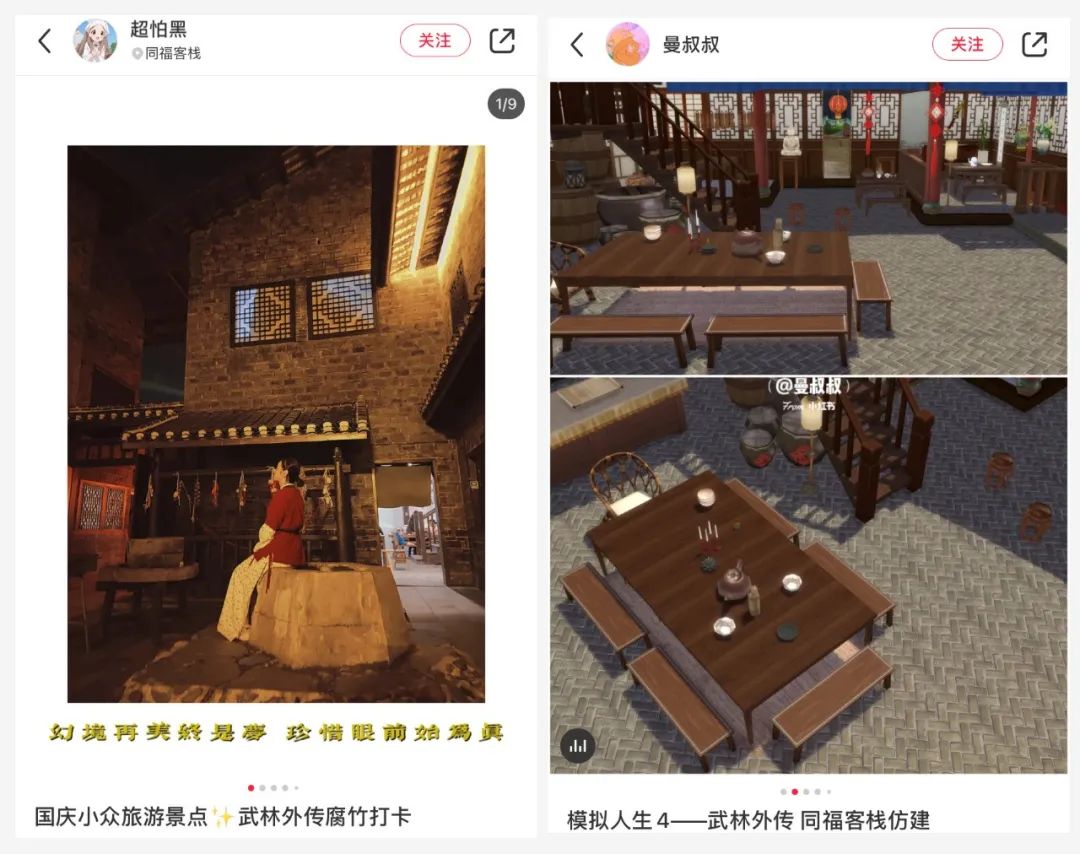 除了留言,也有對那個溫暖的江湖戀戀不舍的人,在虛擬世界中重構同福客棧或者前往拍攝基地再現經典場景,用不同的方式表達對原著的喜愛。