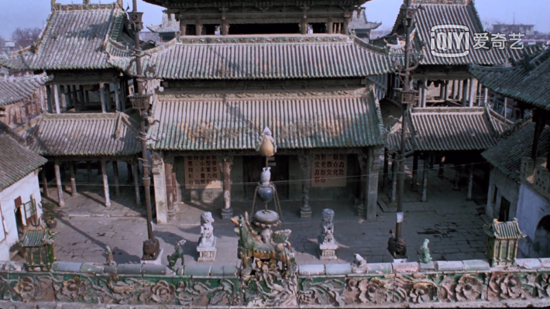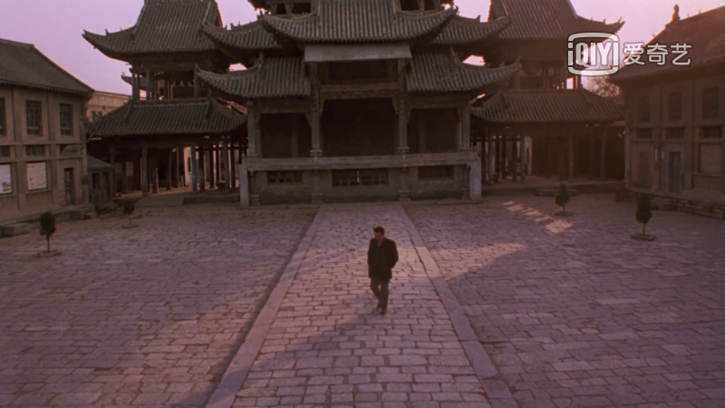 這一次洗藍的《背靠背,臉對臉》,是誕生在《輪回》之后的作品,其影像風格與《輪回》更為不同。《輪回》是一個過度,而《背靠背,臉對臉》中則將城市空間具體化了。《背靠背,臉對臉》的拍攝地在河南省社旗縣的山陜會館,四周的高墻和高大的閣樓圍成了一個完全閉合的空間,大部分故事都發生在這個空間里,造成了一種被“圈”起來的感覺。當戲劇性的情節發生在這個空間里的時候,被自動賦予了一種舞臺小品的既視感。但從影像與空間的關系角度來看,古建筑物在其中承擔的作用是象征表意的,并且與電影的所要表達的主題聯系緊密。