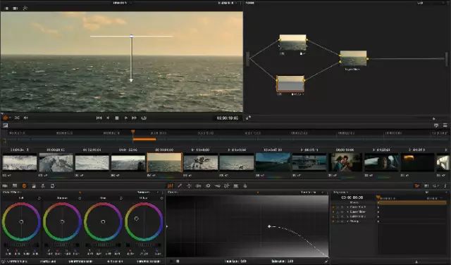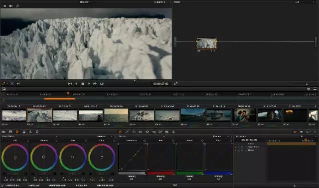 技巧貼士:在使用曲線工具調(diào)節(jié)暗部反差時,注意取消曲線鎖定,這樣只影響亮度,不會影響飽和度,這就是達(dá)芬奇YRGB色彩算法的工作原理。色彩解析:海嘯星球色彩與冰凍星球類似,但飽和度略高,調(diào)性稍暖。step2.分別調(diào)節(jié)高光陰影及中間調(diào)的色相。