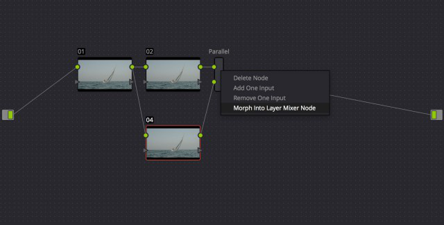 您可以通過右鍵單擊來修改并行或層混合器節(jié)點。您將看到將并行轉換為層混合器節(jié)點的選項,反之亦然,并添加其他輸入和輸出。每次添加另一個并行節(jié)點時,將自動創(chuàng)建混合器節(jié)點(并行或層)的其他輸入。