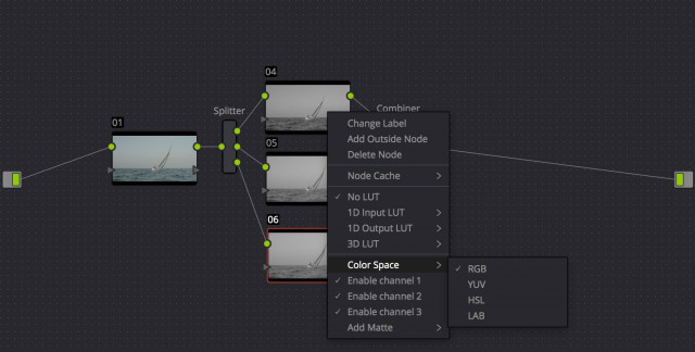 可以以RGB,YUV,HSL和LAB的不同方式拆分三個獨立通道,您可以通過右鍵單擊來啟用和禁用通道。您可以在每個通道中添加更多的串行或并行節(jié)點,以便在組合之前進行更復雜的操作。