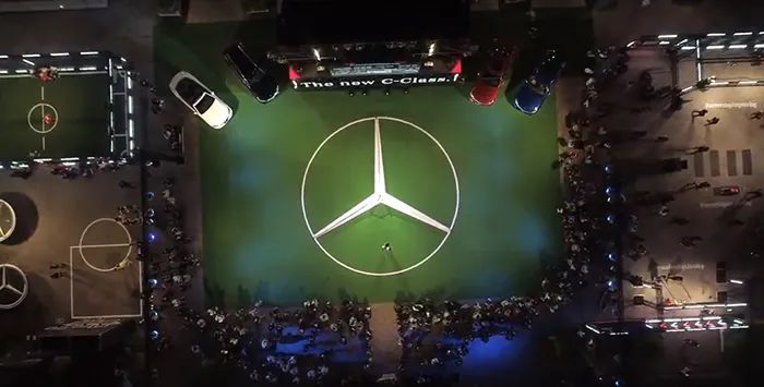 再比如說在梅賽德斯奔馳C-Class臺灣上市發布會上,李奧貝納為奔馳打造了一個“三芒星球場”,在這個球場上,你必須接受來自兩位對手的攻擊挑戰,突破你的攻防能力。把車標與“ never stop improving(永不停止改進)”的理念完美的結合。