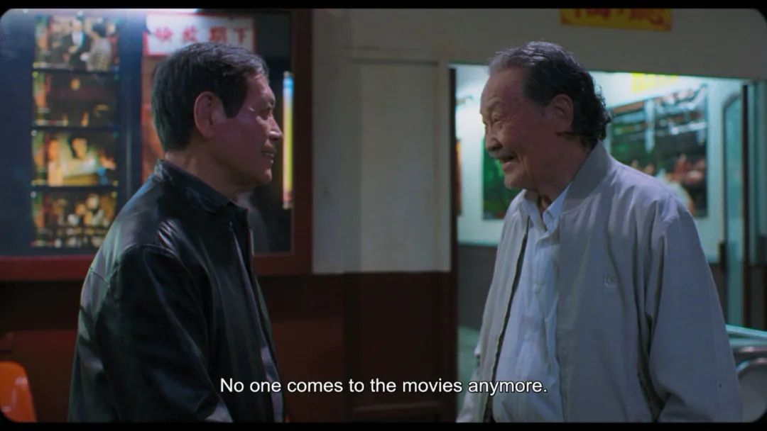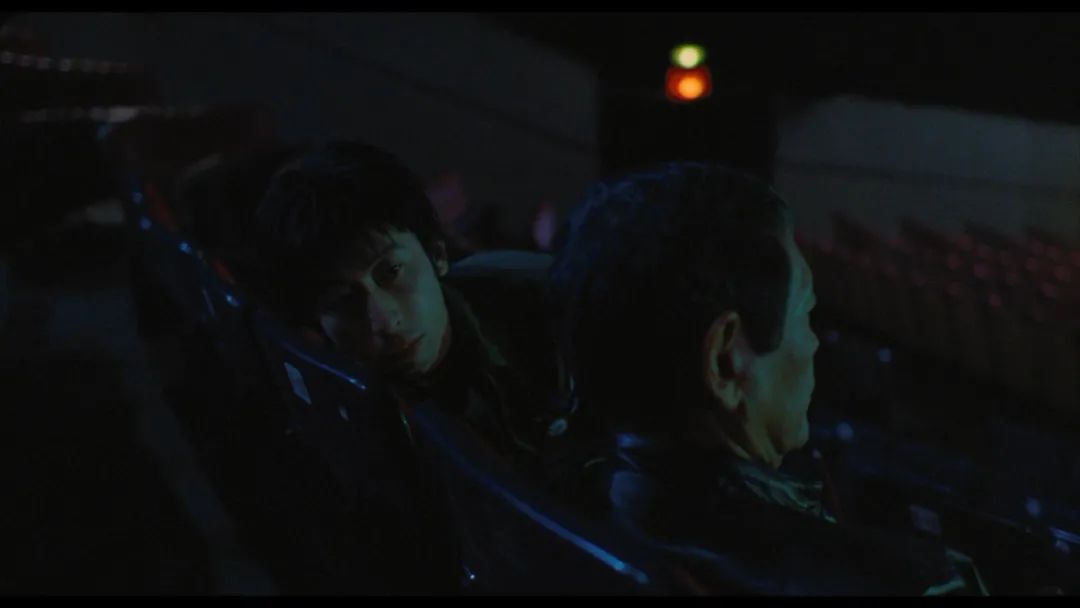 但蔡明亮的凝視,并不是簡單的單向的,而是在包裹在角色與角色之間的凝視之外的,攝影機以“他者”的身份進入視角,去凝視由角色構(gòu)建起的對立或者鏡像關(guān)系。《愛情萬歲》中,李康生與阿榮之間的相互凝視建立在愛欲的基礎(chǔ)上,用西瓜構(gòu)建起凝視的路徑和方式,而阿榮的凝視對象是楊貴媚。在整個過程中,男性性欲之間建立起了相互之間的鏡像關(guān)系,阿榮與李康生不斷地相互理解,相互靠近,相互趨同的關(guān)系。而這種關(guān)系,同樣被延伸到了《日子》中,兩個角色之間相互之間構(gòu)成對彼此的映射,構(gòu)成男性情欲迸發(fā)的基礎(chǔ)。《不散》中,引導(dǎo)者依舊是演員本身,但其本質(zhì)依舊是鏡像的、投射的、自我的。電影中第一個出場的日本同性戀者在電影院中不斷地尋找著精神慰藉,他不斷地用各種方式去嘗試勾引,尋找精神慰藉,嘗試著去尋找一個情欲的精神投射。當他找到了英俊帥氣的阿榮之后,這種彼此之間的凝視順理成章的建立起來。與《愛情萬歲》的單向凝視相同,但這種凝視是出于不同目的且不存在雙向投射關(guān)系,阿榮僅僅是作為情欲的載體出現(xiàn)的,可以視作是試圖建立起鏡像凝視而被其中一方打破。1949年,精神分析學(xué)家、“鏡像理論”的提出者拉康在蘇黎世國際精神分析大會上提交了《助成“我”的功能形成的鏡子階段》。所謂的鏡像階段,即當6到9個月大的時候,尚無法有效控制自己的破碎身體的幼兒在鏡子中看到自己的統(tǒng)一形象時,即產(chǎn)生了一種圓滿的格式塔圖景,并將這個圖景誤認為是自己,但這種想象性認同只是一種“誤認”。這就造就了個體之間意識的差異性,形成了蔡明亮早期電影《愛情萬歲》和《青少年哪吒》之間虛無的關(guān)系,包括《不散》構(gòu)建的單戀關(guān)系,亦是建立在這種錯誤的想象性認同的基礎(chǔ)上。在李康生拍攝的姊妹篇《不見》中,這種鏡像關(guān)系和想象性認同則更為明顯。電影中,孫子尋找爺爺和奶奶尋找孫子兩條主線之間是并行不悖的。李康生在祖孫關(guān)系中,展現(xiàn)出了一種人際關(guān)系失敗的結(jié)果,爺孫之間的存在著深不見底的代溝,構(gòu)成了想象性認同“誤認”的合理性,并在第一場的撕裂報紙和金魚死亡的鏡頭中暗示了這種代溝的不可彌合性。同樣,我們嘗試用拉康的“鏡像理論”去解釋《不散》中構(gòu)建的銀幕上下的關(guān)系,會發(fā)現(xiàn)電影的內(nèi)外存在的鏡像關(guān)系和凝視動作非常明顯。銀幕上下的兩部電影是同時開場的,當胡金銓版《龍門客棧》的序曲《小刀會》響起,兩部影片之間構(gòu)成了彼此之間的鏡像映射。當銀幕外的石雋和苗天入場坐定,觀看40年前由自己主演的影片,銀幕內(nèi)外構(gòu)成了凝視關(guān)系。銀幕作為電影展示的裝置,在拉康的學(xué)說中,其作用取代了鏡子。通常情況下,觀眾在銀幕上凝視的不可能是自己的影像,而是一個對象,也就是“他者”理論。拉康說“我們只需要將鏡子階段理解成分析所給予的那種認同過程即可,也就是說主體在認定一個影像之后自身所起的變化。”他的鏡像理論,將銀幕上下的觀眾與作為凝視對象的“他者”之間的關(guān)系歸類為一種認同過程。觀眾在想象中,將自己作為主體代入到電影之中,形成銀幕上下的內(nèi)外統(tǒng)一。在《不散》中,凝視這一行為無時無刻不在發(fā)生之中,時而作為觀眾,時而作為代入者。同一個劇場內(nèi),坐下的觀眾不盡相同。楊貴媚飾演的妓女是觀者,影像在她的面前是作為娛樂工具存在的。而石雋和苗天兩位演員的介入則打破了“觀眾不可能凝視自我”的常理推斷,使得“鏡像理論”上的“他者”與“本我”,在不同時間線上有了重疊,帶來的感受非常奇妙。而在廁所內(nèi)的同性戀世界中,這種凝視捕捉到了很多有趣的細節(jié)。觀眾完全是以“他者”的身份在進入這個場所,隨著日本同性戀者的視角,看到了一種飄忽的不確定性和曖昧性。這是蔡明亮對于影像中的“鏡像理論”的探索,雜糅進了曖昧的互動和虛幻的、鏡花水月一樣的統(tǒng)一性。《天邊一朵云》中的大尺度場面同樣來源于此,在凝視與被凝視之間,主體的作用與“他者”之間彼此交融,相互觀察。當《龍門客棧》電影散場,場燈亮起,長達兩個小時的凝視結(jié)束,喘息的時間留給了電影去散發(fā)余味。這一縷留香在電影院外石雋與苗天兩位演員幾十年后再相見的時刻,散發(fā)出了穿越時間的魔力,“他者”的凝視進一步被曖昧的情緒取代,一種區(qū)別于觀眾的,帶有情緒的“凝視”在銀幕中蓄積力量。而同樣地,銀幕外的觀眾作為真正的“他者”,也切身感受到了電影的復(fù)雜情緒所在。懷舊也好,惋惜也罷,都在一瞬間潸然淚下。蔡明亮在采訪中介紹,這座影院的形式和小時候的老式影院一模一樣,但位置很偏,又因為有鬧鬼的都市傳說,所以平時很少有人來看電影,這就使得拍攝場地變成了一個同性戀聚集地。這就讓場所自然而然地分成了三個區(qū)域,一是電影放映區(qū),二是同性戀活動區(qū),三是幕后工作區(qū)。電影的核心場所——放映廳中,構(gòu)建起“本我”和“他者”之間三重凝視和被凝視的關(guān)系。而在同性戀活動區(qū)中,這種凝視的關(guān)系則是被廁所、走廊、過道這些狹小的空間所