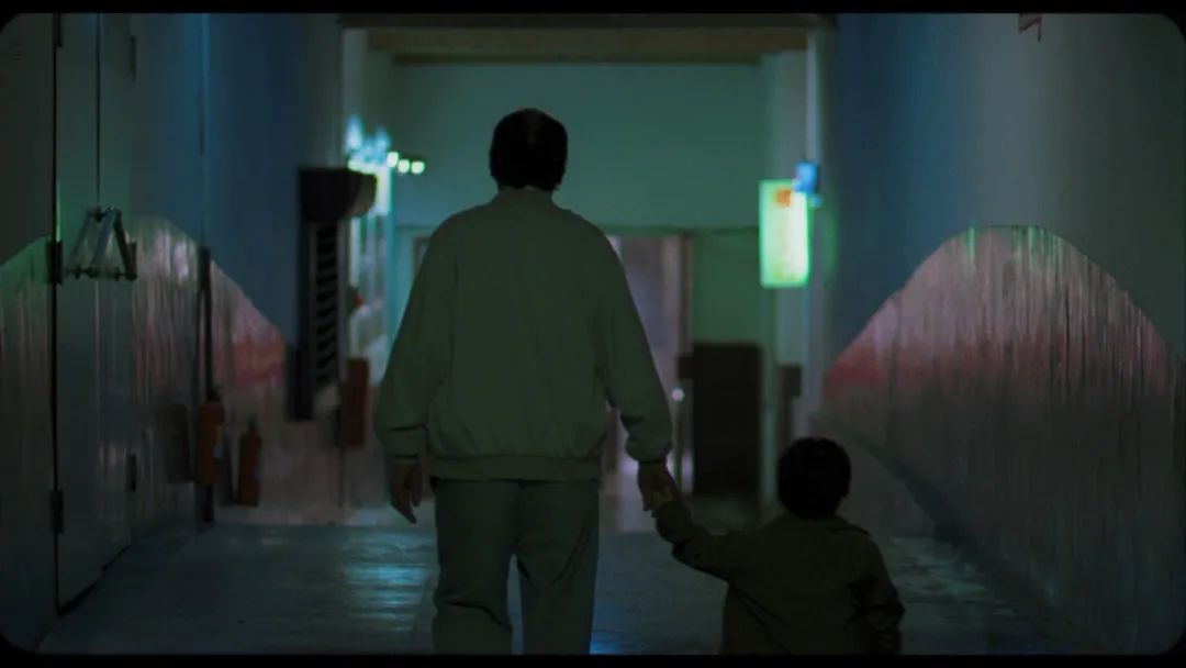 蔡明亮的電影一直在試圖用時間去展現(xiàn)完整的變化過程,在《郊游》中,鏡頭長時間凝視著演員的臉,十分鐘之內(nèi),演員的細微表情和眼神都徹徹底底的暴露在大銀幕上。觀眾的觀感時而抽離,時而浸入,營造出一種感受,觀眾仿佛在觀看一場盛大的默劇表演,所有的演員用肢體動作來表現(xiàn)情緒,全情進入到電影之中。《郊游》中站在路口高唱《滿江紅》的李康生和《愛情萬歲》里坐在廣場上哭泣的楊貴媚,成為引導(dǎo)觀眾進入長鏡頭體驗情緒的引路者。