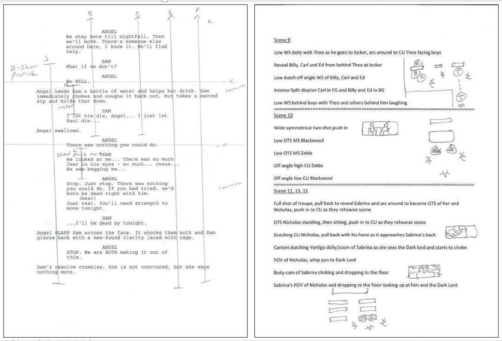 但當(dāng)我深陷長時間拍攝之中、頭腦焦慮之時, 能取出這份文件回顧當(dāng)天的場景和所有部門的處理方法,這是很有幫助的。這在和副導(dǎo)演準(zhǔn)備拍攝及拍攝的執(zhí)行方面是很有益的。當(dāng)拍攝結(jié)束,轉(zhuǎn)戰(zhàn)下一項目,這也會是很好的提醒。