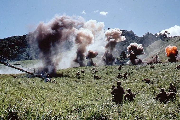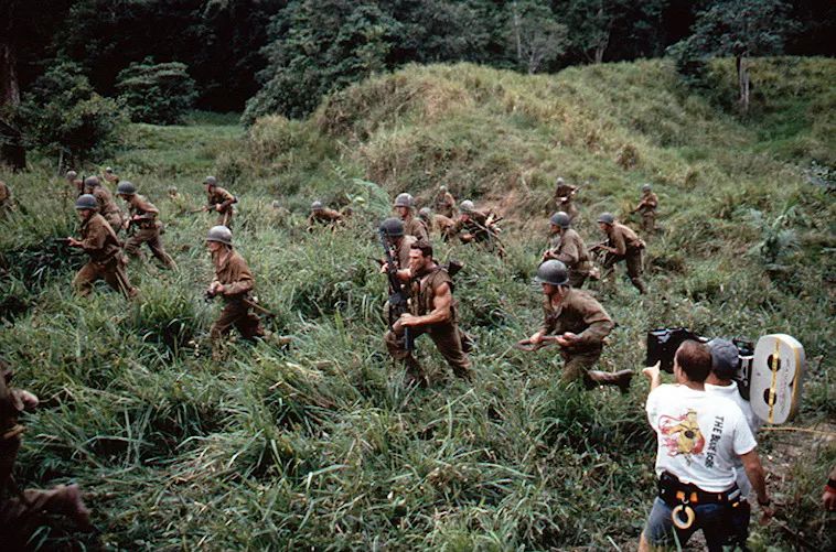 在瓜達康納爾島探險期間,讓我們印象深刻的一件事是,這里的熱帶環境充滿了色彩。畢竟,我們已經習慣了觀看關于二戰的黑白新聞片。有一次,我們確實討論過將這部電影拍成黑白的,但這個想法最后還是被否決了。所有這些暴力行為都發生在色彩如此豐富的環境中,這種沖擊力是非常驚人的,我們覺得用任何其他方式去講這個故事都是不準確的。在對這個地區深入探索的過程中,我們對影片的調色和色彩有了很多不錯的想法。