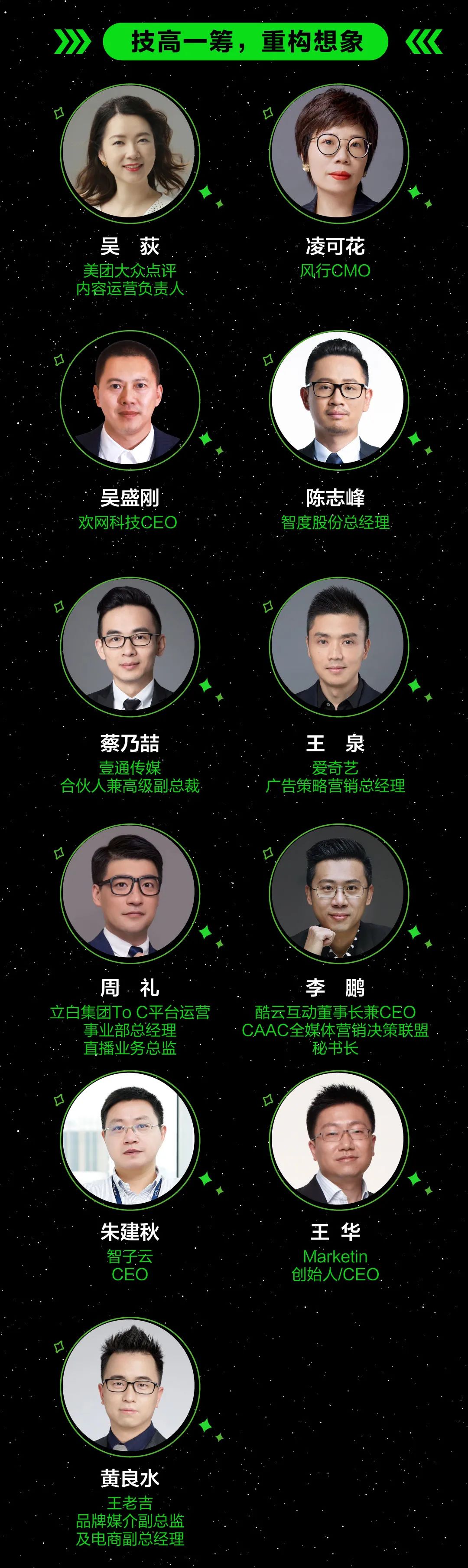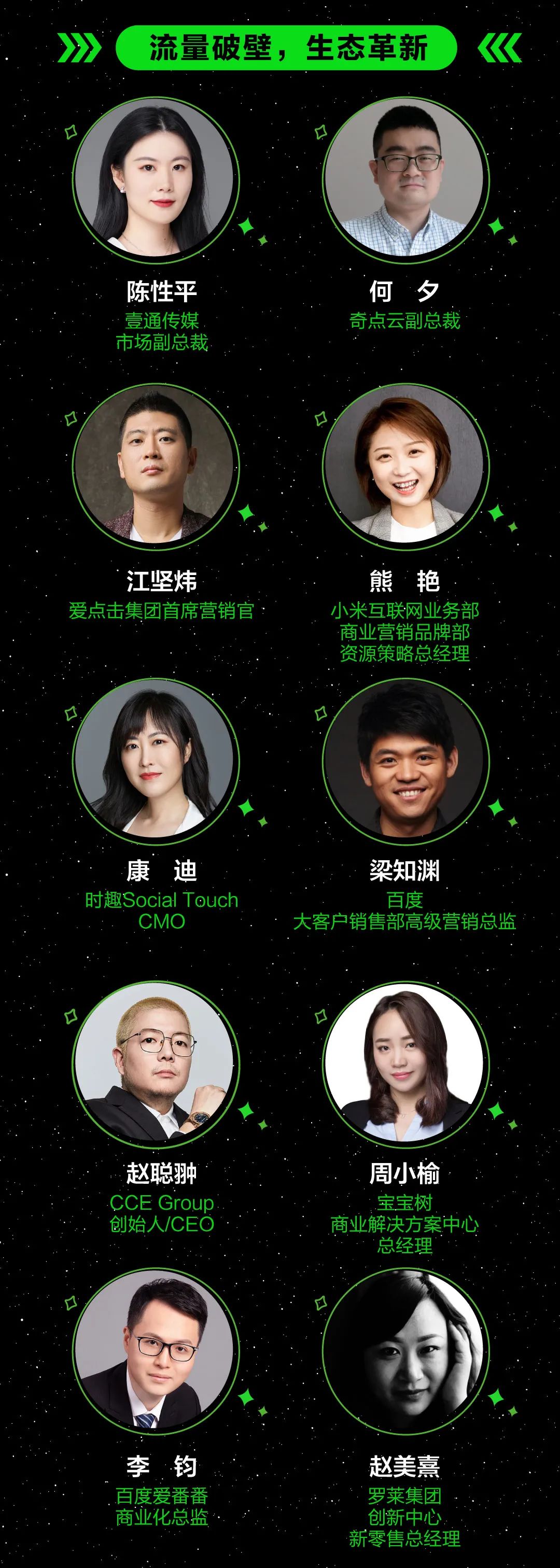 我們?cè)O(shè)立了包括跨界分享、流量、新消費(fèi)、內(nèi)容、技術(shù)、效果等六大主題版塊,邀請(qǐng)了諸如海爾智家、王老吉、立白集團(tuán)、元?dú)馍帧?lè)樂(lè)茶、羅萊生活集團(tuán)、五谷磨房、小殼、果銳科技、溪木源、惠達(dá)衛(wèi)浴、愷米切、阿里巴巴天貓精靈等知名品牌,明晰市場(chǎng)變化,洞察市場(chǎng)趨勢(shì),與行業(yè)各方一同把握未來(lái)方向。