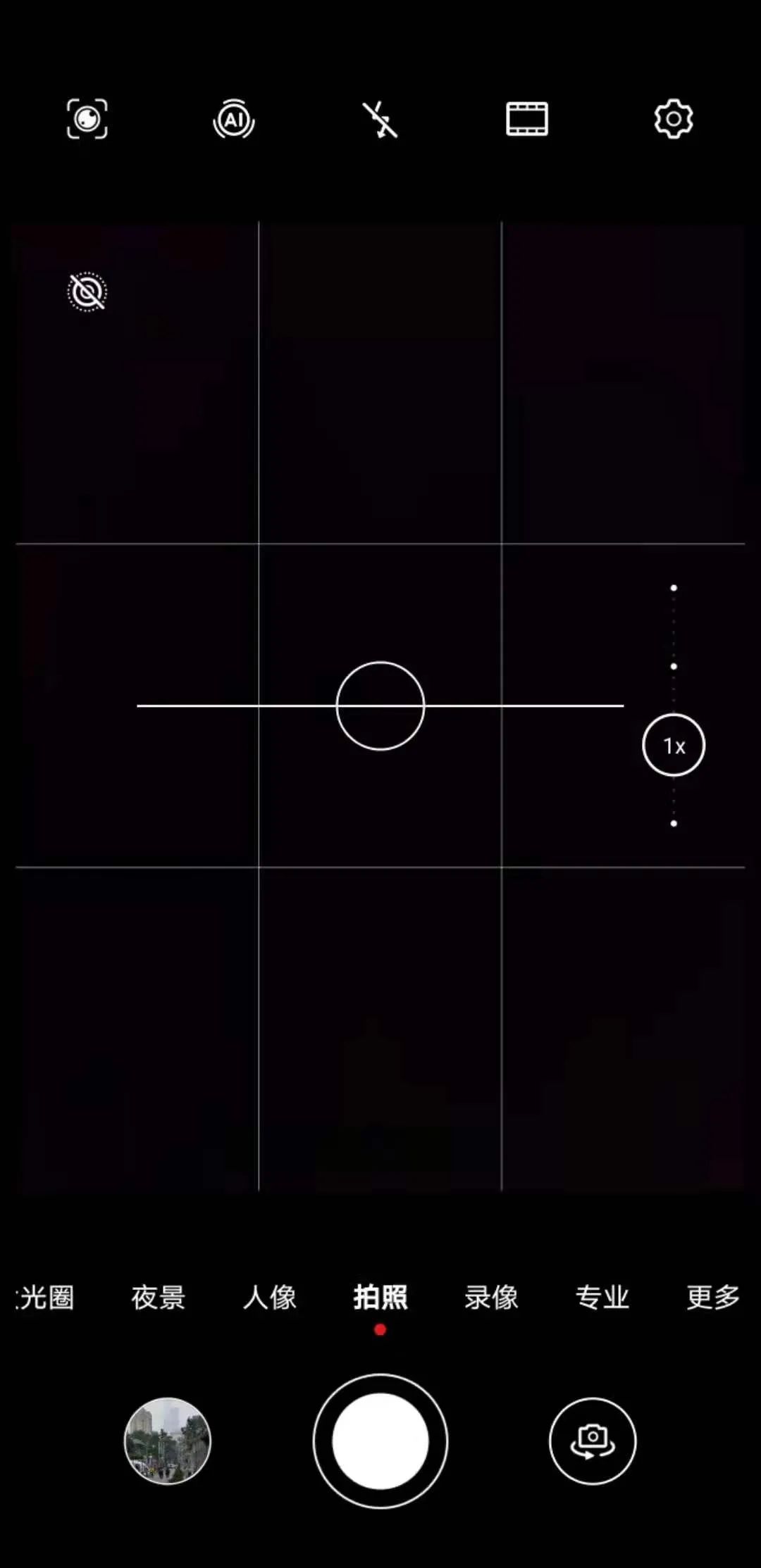 比如現在這個界面,右邊顯示1×,這就是1倍主攝。我們可以點擊上下滑動,可以實現變焦。也可以直接點擊其它“點”,直接跳到諸如0.6×超廣角這樣的檔位。