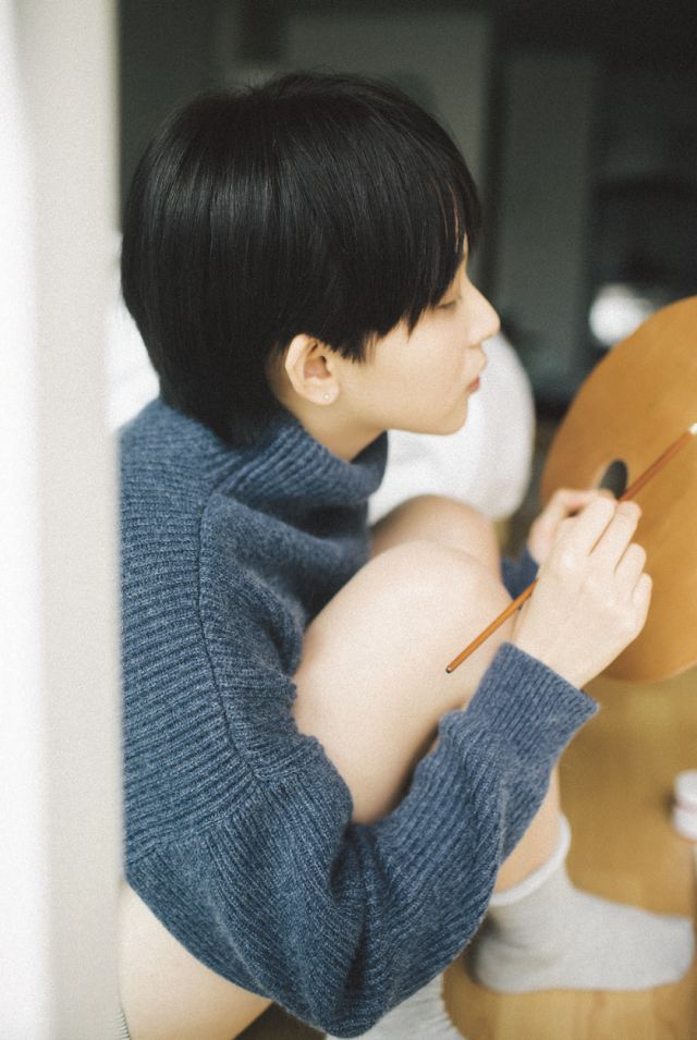 其實(shí)用糖紙的確是一個(gè)偶然,有一次在上海的一家咖啡館拍客片,我剝開(kāi)一顆糖,將糖紙順手攥在手里,拍攝的時(shí)候靈光閃現(xiàn),把糖紙放到了鏡頭前,竟然有意想不到的效果。當(dāng)初春的陽(yáng)光繾綣出的溫柔與糖紙的色彩暈染在一起,生成出了少女的感覺(jué)。后來(lái)在拍室內(nèi)照片的時(shí)候,我也用了彩色的糖紙來(lái)做前景,和人物藍(lán)粉色系的服裝相互呼應(yīng),照片整體呈現(xiàn)出了一種柔和的調(diào)性。