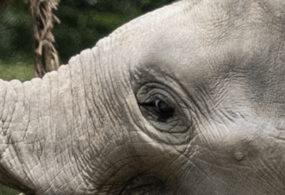 比如我在野生動物園拍攝小象的時候,距離還是很遠的。而拍攝出來的效果真的是讓人驚嘆。非常棒的銳度表現。